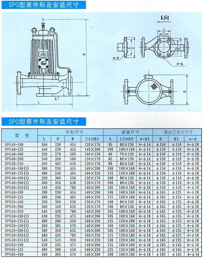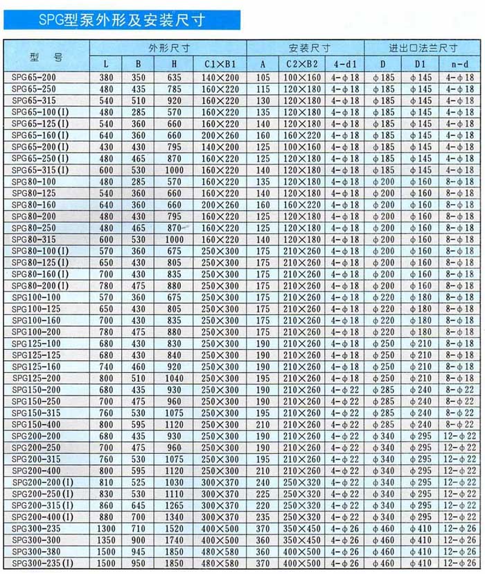 SPG型屏蔽泵进出口法兰的规格设计与标准阀门相同,且位于同一中心线上,中心低,便于管道布置,泵房设计也便为合理实用.
