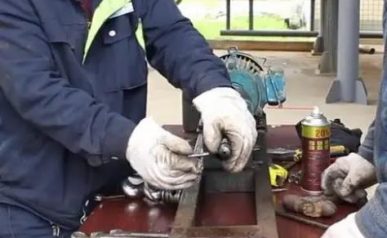 首先拆卸泵头,首先要从基座开始拆卸,拆卸上面两个螺丝,有生锈的话注意点上除锈剂,然后松动四根拉杆,把四根拉杆螺丝拆下来,然后把泵头敲下来。