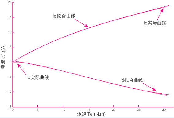 图1电流id、iq和转矩te的关系曲线