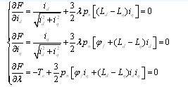 最佳转矩控制问题等价于定子电流满足式(4)条件的极值问题。 作为拉格朗日函数: