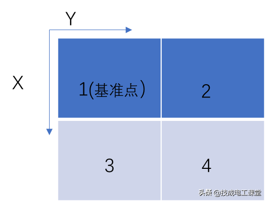 理解了数组之后,让我们来看看具体的编程事例。 图中,有4个需要计算的点,以第1点为基准。 (各模块的纵横为200mm*200mm )