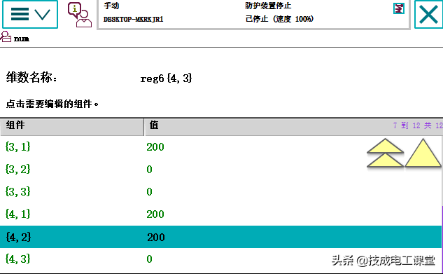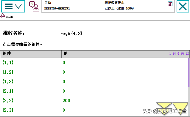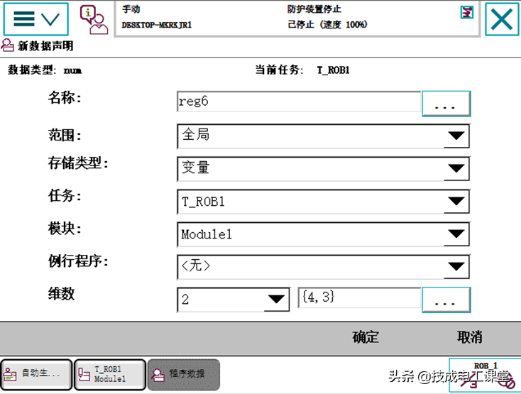 下面我们来看看示教器的编辑方法。 创建(新数组reg6、3 ),创建数组后,请按照上述进行编程。