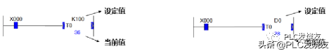 计时器的设定值显示在计时器的右上角,可以通过普通数据,例如下图中的K100和寄存器控制寄存器。 例如,填写D0时,D0中的数据可以通过触摸屏控制,也可以通过其他程序控制。