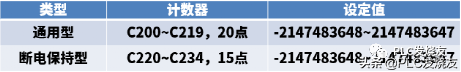 需注意一点,不同型号的plc定时器的范围都是不同的,以下表格是FX3U型号的plc的计数器的范围: