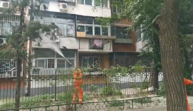两辆环卫洒水车仅4分钟后就赶到现场,使用车载水炮对着火点进行扑救,成功遏制了火情的蔓延。消防员赶到后双方联手,经过8分钟,成功扑灭明火。